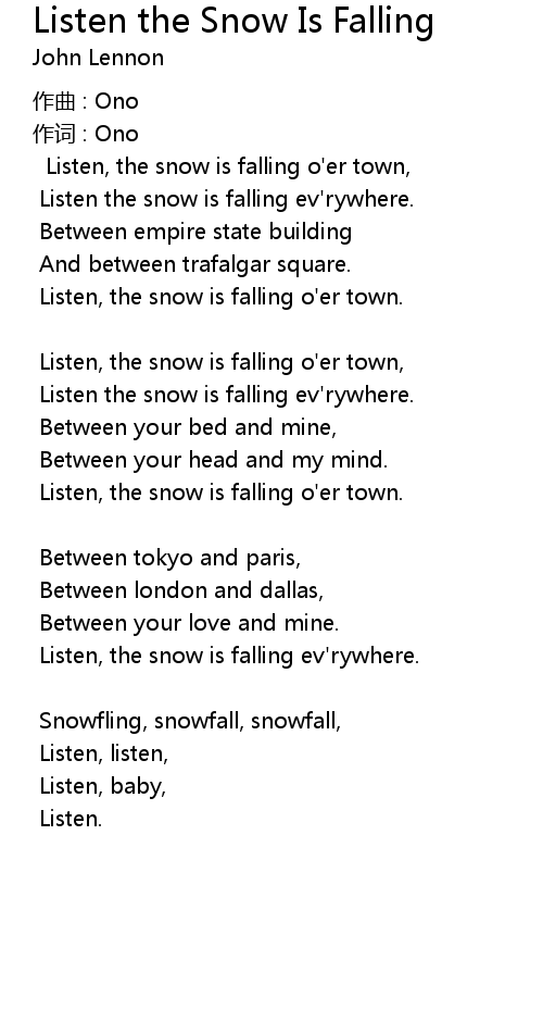 | Listen, the snow is falling o'er town, | |