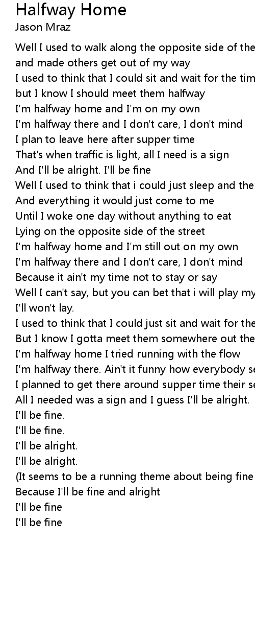 I'm halfway home and I'm on my own |