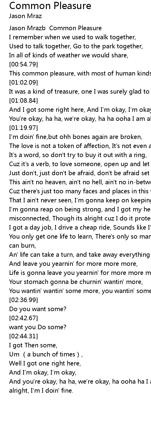 | [00:00.72] | Jason Mrazb Common Pleasure |