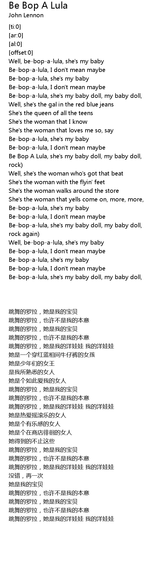 Be-bop-a-lula, she's my baby doll, my baby doll, my baby doll |