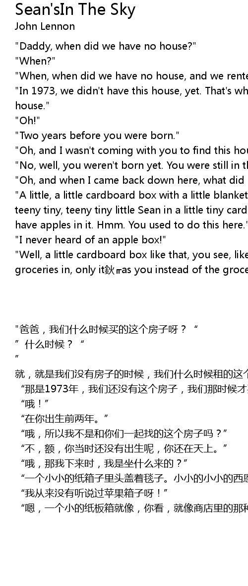 | [00:07.432] | " When, when did we have no house, and we rented this house?" |