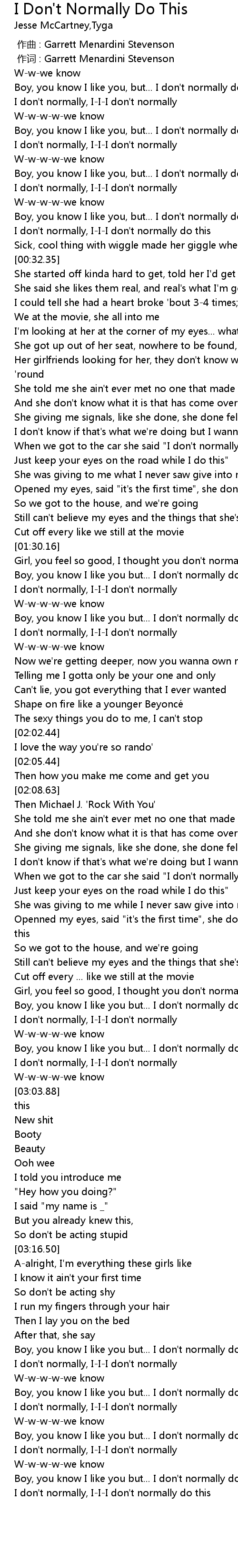 | [02:57.50] | Boy, you know I like you but... I don't normally do this |