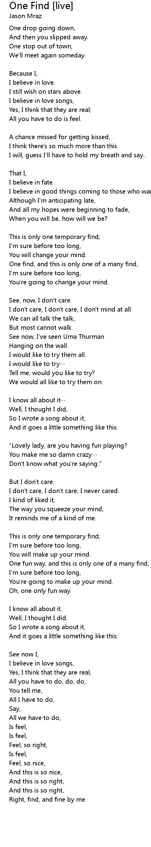 I believe in love songs, |