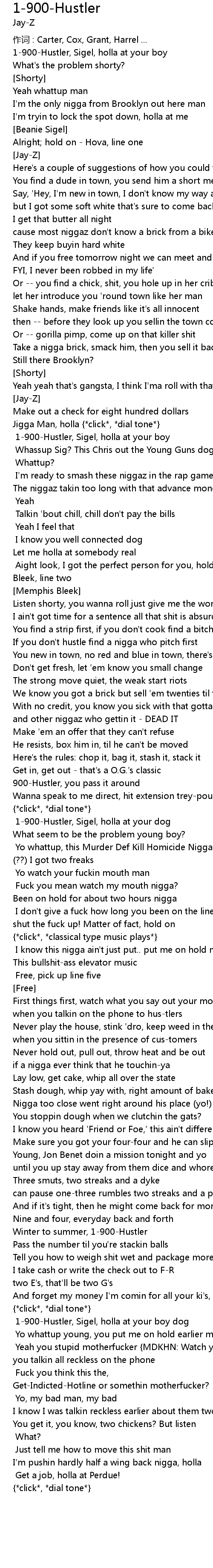 | [Beans] 1-900-Hustler, Sigel, holla at your dog | |