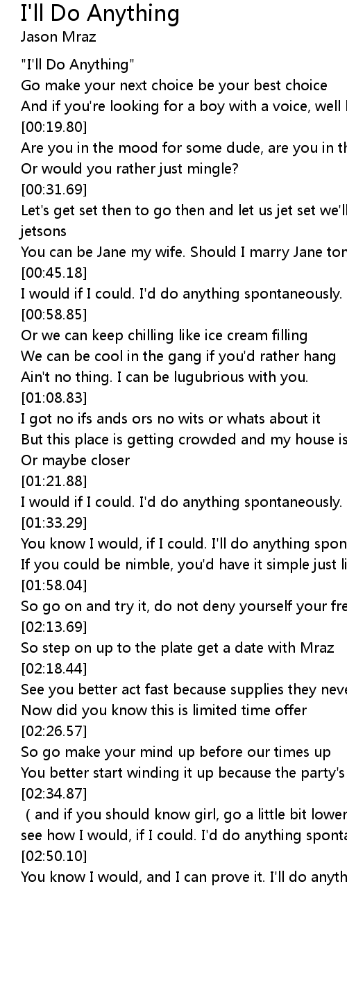 | [02:38.99] | see how I would, if I could. I' d do anything spontaneously. |
