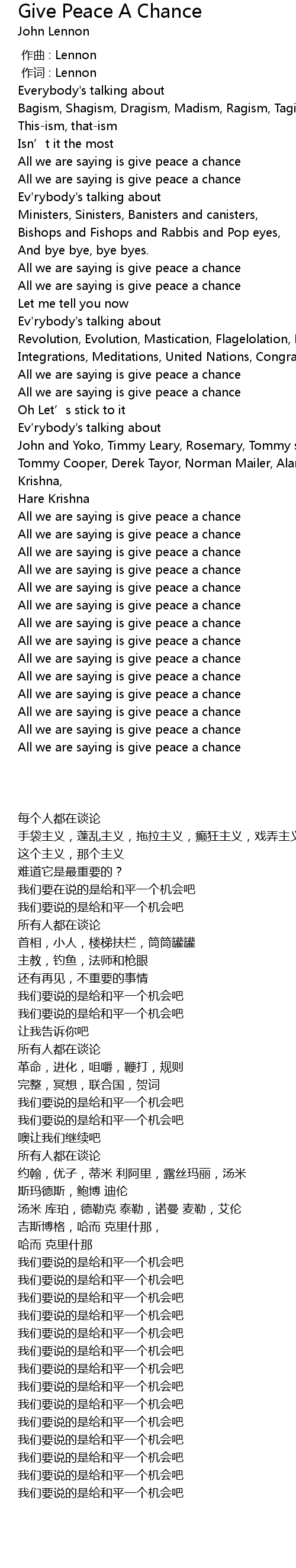 | [03:06.390] | All we are saying is give peace a chance |