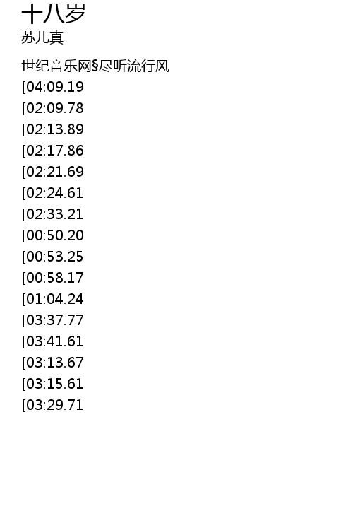 | [03:53.69][03:37.77][03:21.47][03:05.74][01:29.67][01:13.60] | huái niàn de shí bā suì |