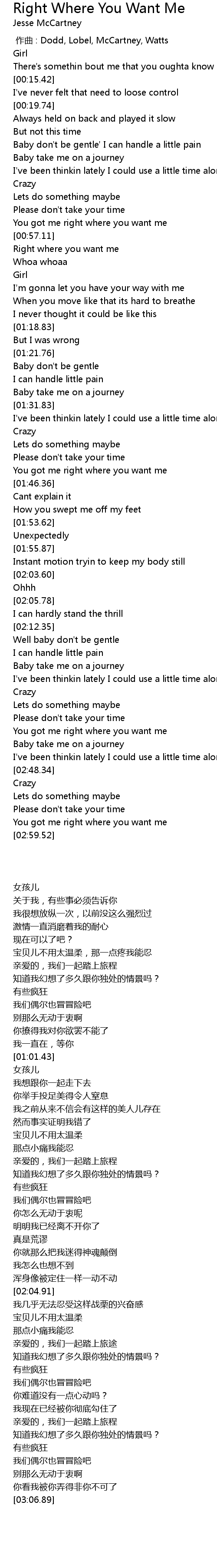 | [00:59.36] | Right where you want me |