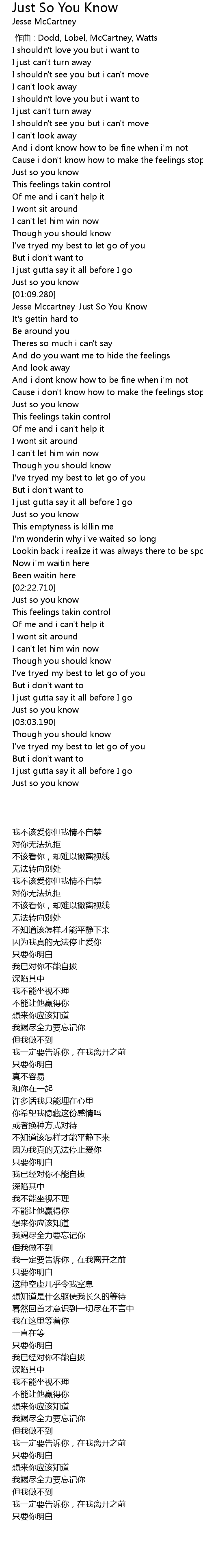 | [01:14.840] | Jesse MccartneyJust So You Know |