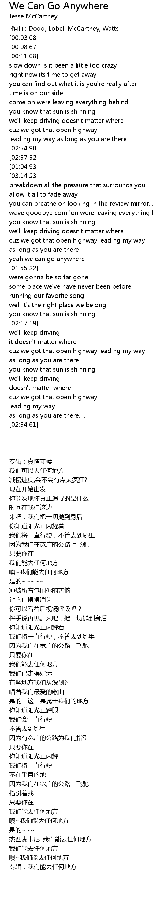 | [03:07.99][00:08.67] | jesse mccartneywe can go anywhere |