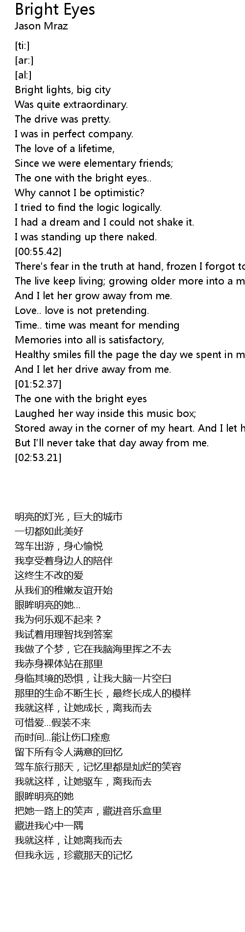 | [02:21.57] | The one with the bright eyes |