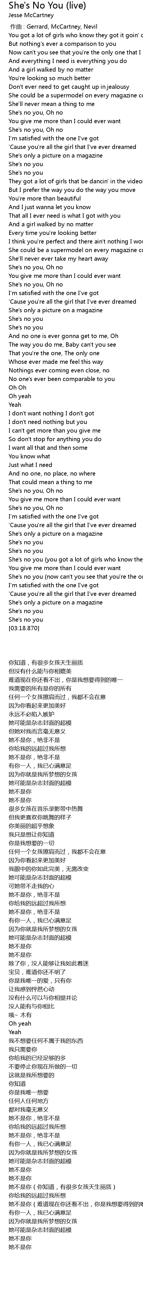 | [03:00.900] | She's no you (now can't you see that you're the one I really want) |