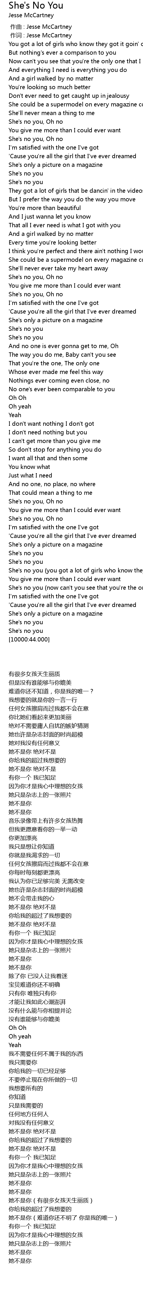 | [00:32.220] | She's no you, Oh no |