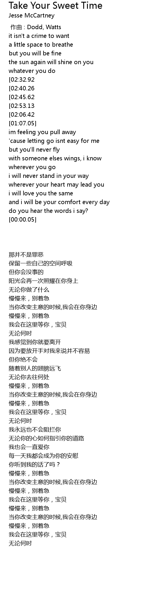 | [02:59.01][02:32.92][01:41.79][00:37.55] | take your sweet, sweet time |