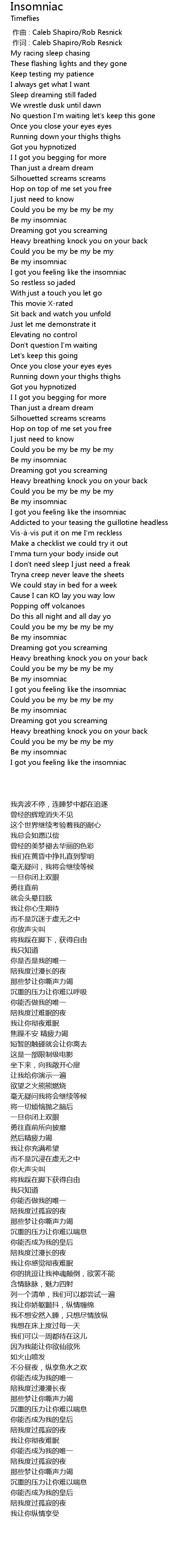 | [00:54.90] | I got you feeling like the insomniac |