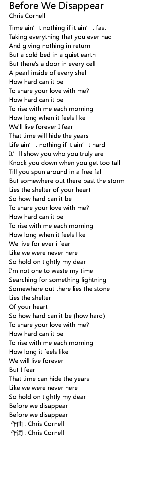 | [00:00.00] | zuò qǔ : Chris Cornell |