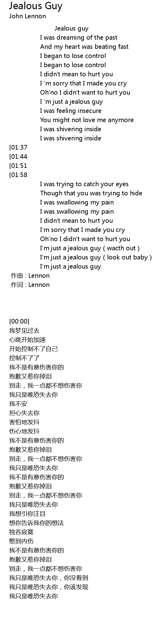 | [00:00.00] | zuo ci : Lennon |