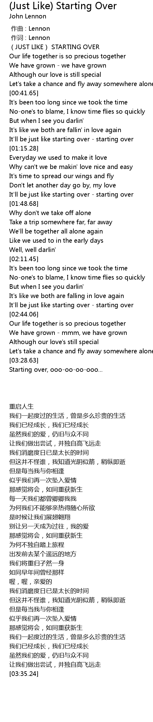 | [01:37.79] | It'll be just like starting over - starting over |