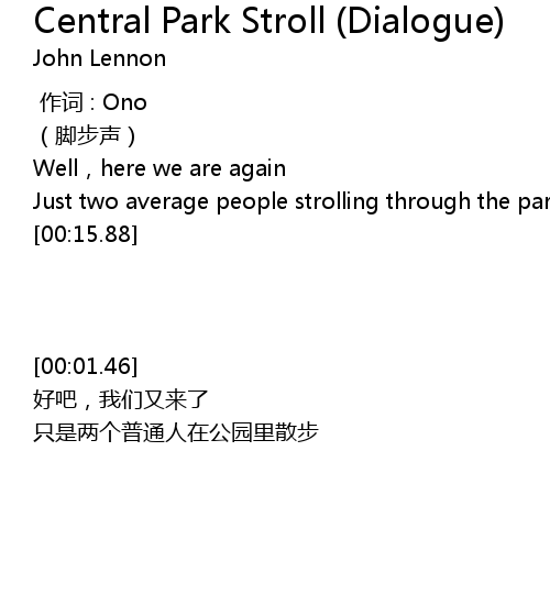 | [00:11.14] | Just two average people strolling through the park |