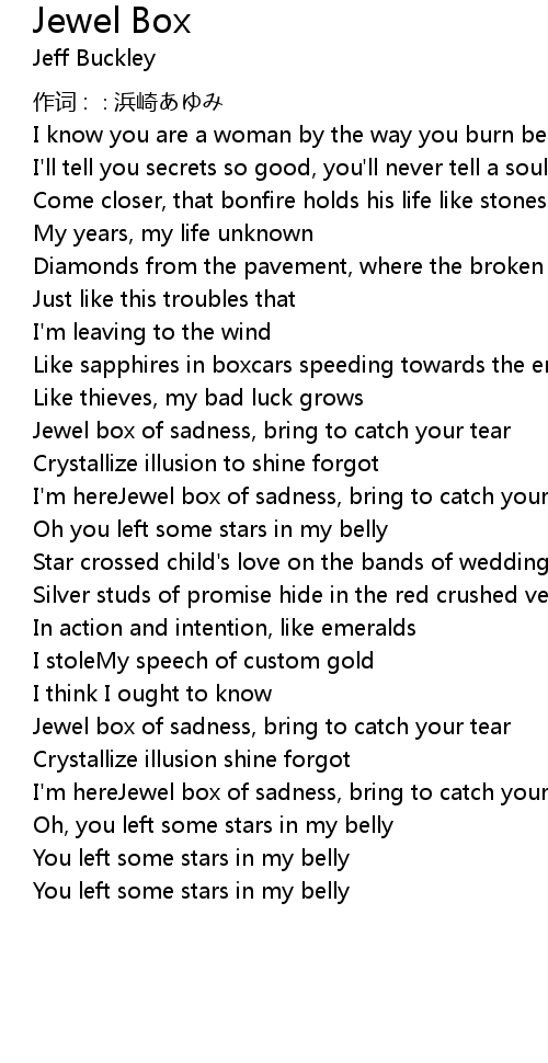 | I' m hereJewel box of sadness, bring to catch your tear | |