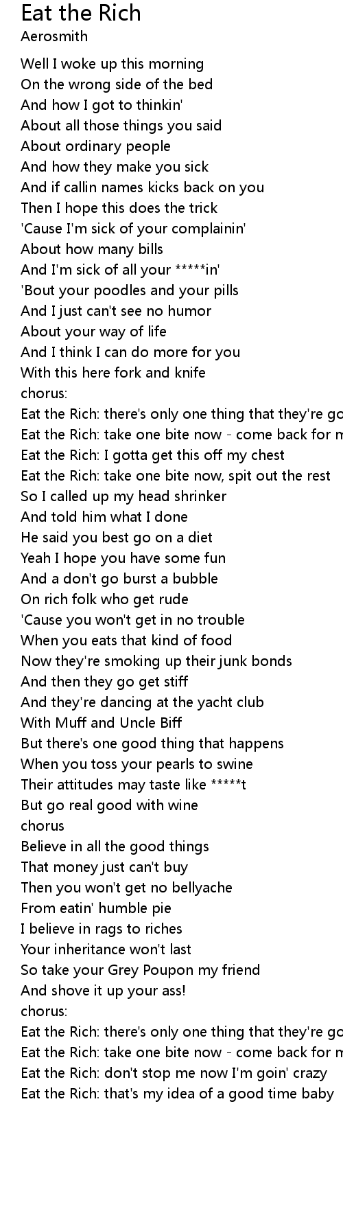 Eat the Rich: that's my idea of a good time baby |