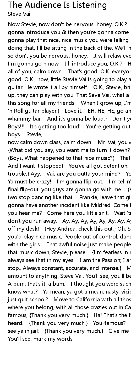 | now calm down class, calm down. Mr. Vai, you' ve got to turn it down... | |