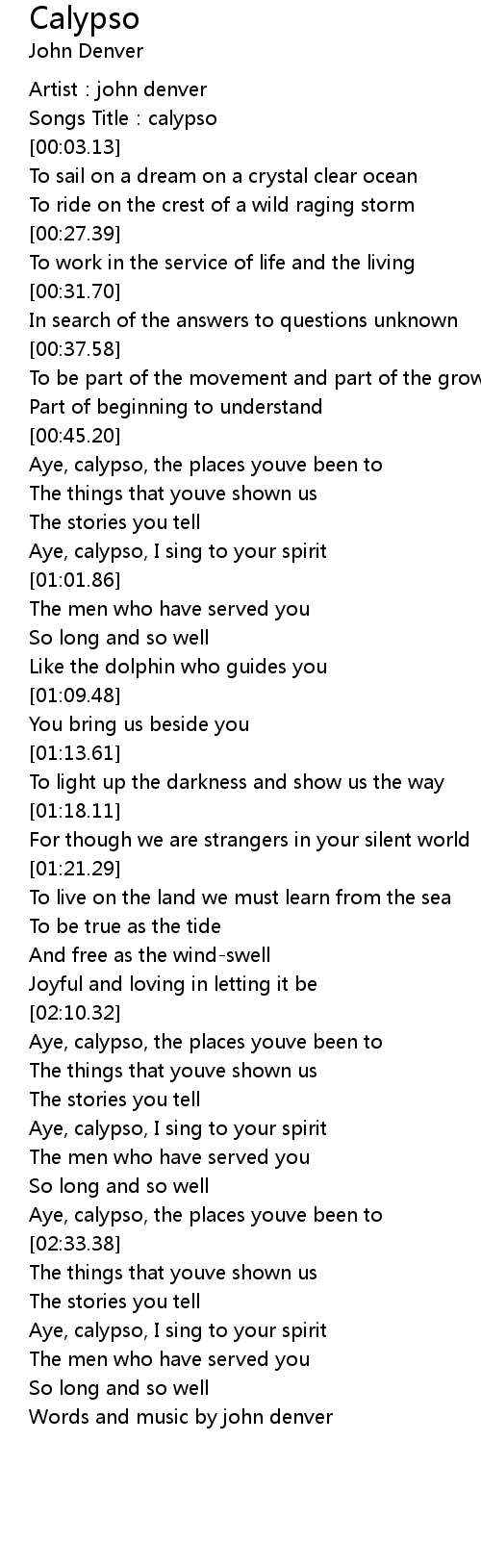 | [00:45.70] | Aye, calypso, the places youve been to |
