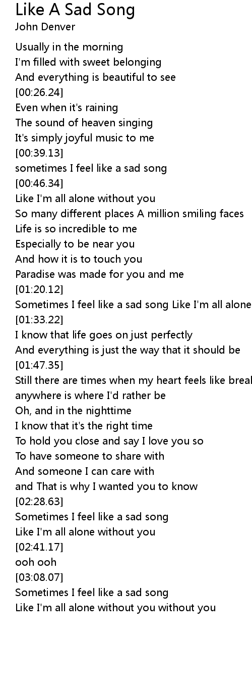 Sometimes I feel like a sad song Like I'm all alone without you |