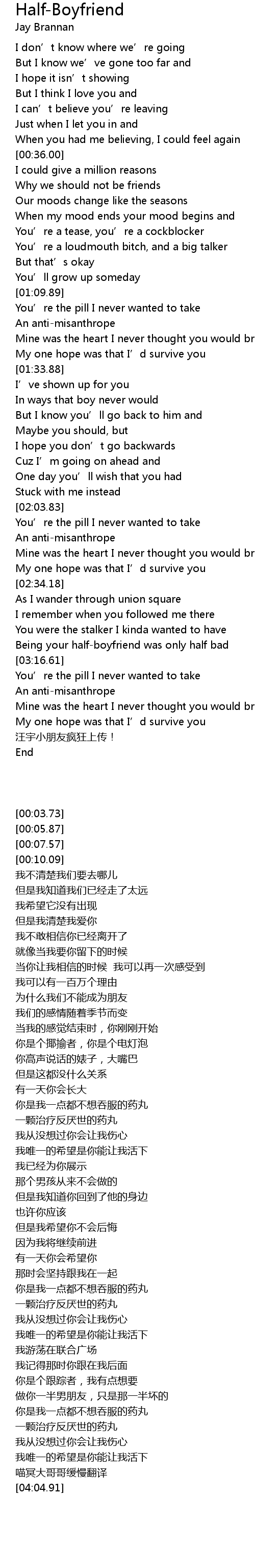 | [03:04.02] | Being your halfboyfriend was only half bad |