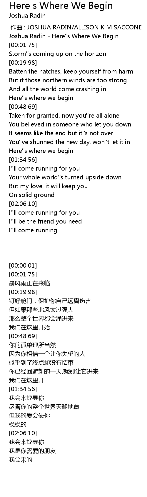 | [00:00.01] | Joshua Radin - Here''s Where We Begin |