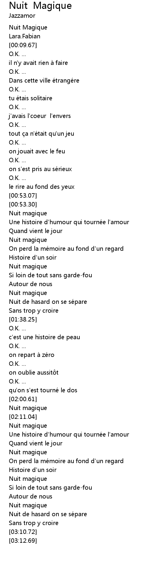 | [01:06.46] | On perd la mémoire au fond d'un regard |