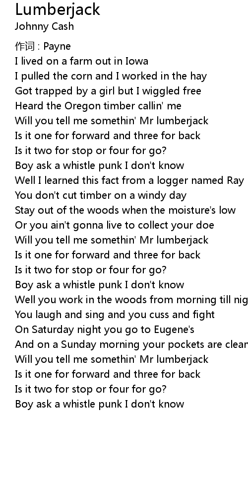 | Will you tell me somethin' Mr lumberjack | |