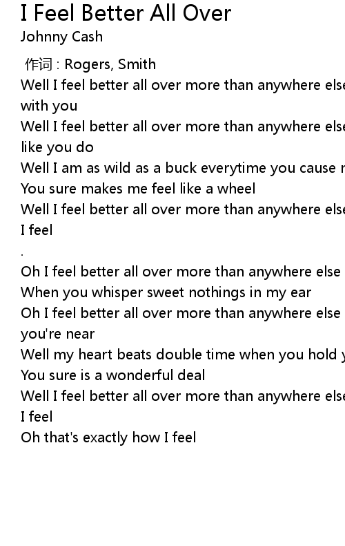 | [00:31.78] | Well I feel better all over more than anywhere else that' s exactly how I feel |