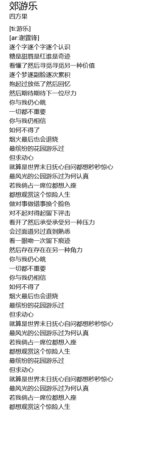 | [02:37.764] | 最风光的公园游乐过为何认真 |