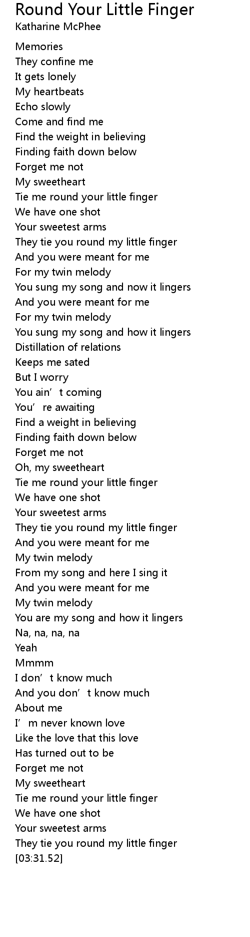 | [03:25.94] | They tie you round my little finger |
