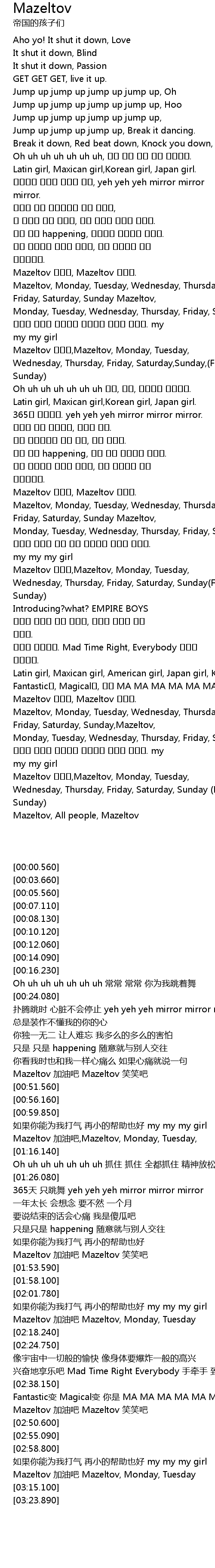 | [03:23.890] | Mazeltov, All people, Mazeltov |