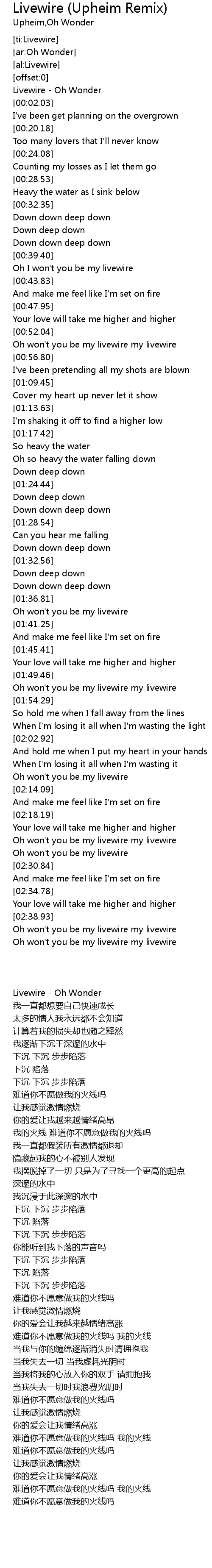 | [02:23.08] | Oh won't you be my livewire my livewire |