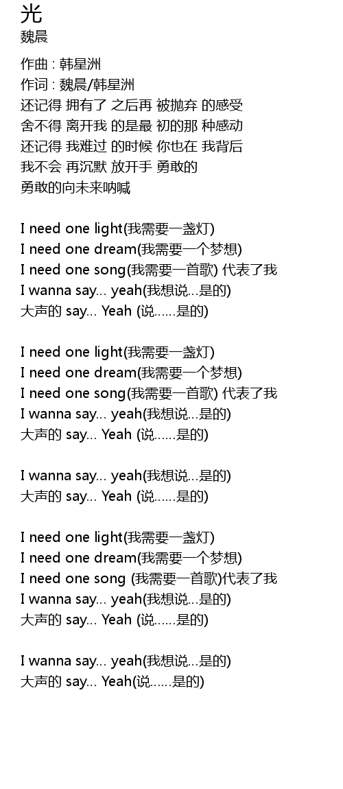 | I need one song wo xu yao yi shou ge dai biao le wo | |