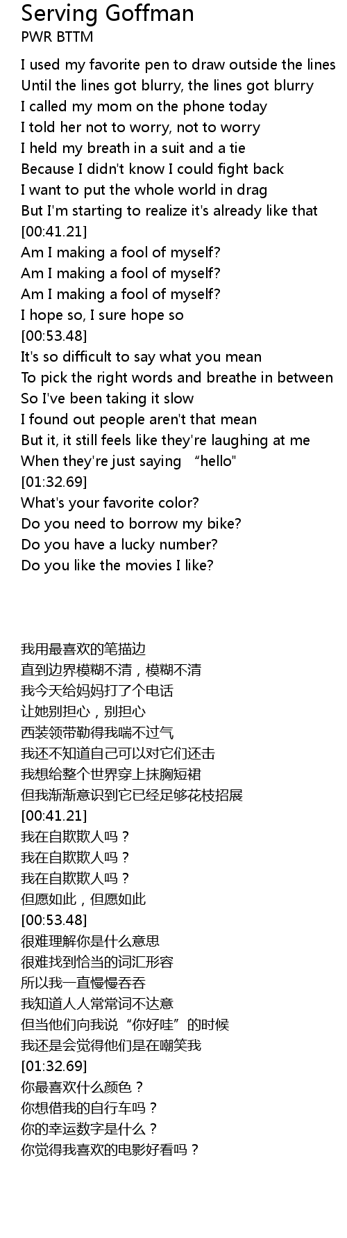 | Song | Serving Goffman |