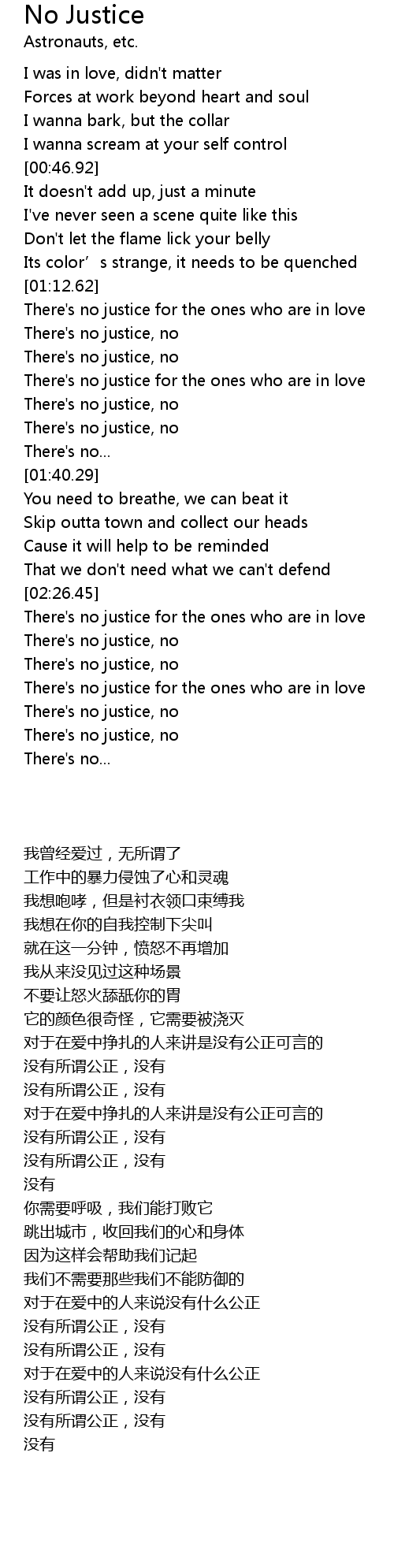 | [02:46.43] | There' s no justice, no |