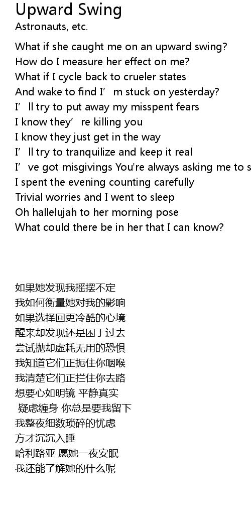 | [00:32.00] | What if she caught me on an upward swing? |