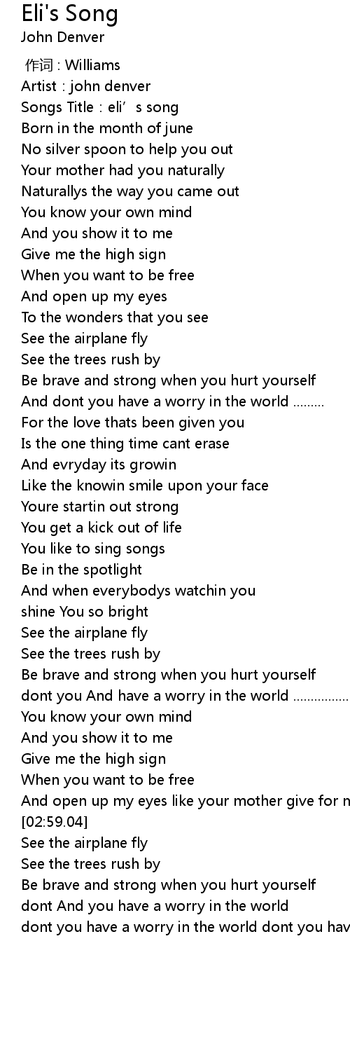 | [00:02.34] | Songs Title:eli’s song |