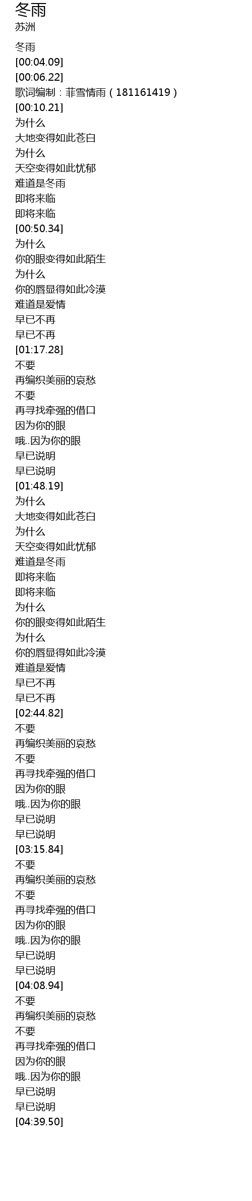 | [00:07.13] | gē cí biān zhì: fēi xuě qíng yǔ 181161419 |