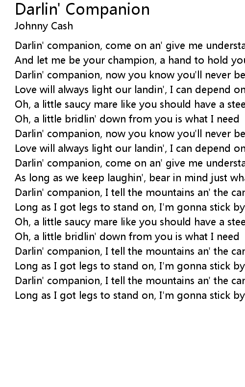 Darlin' companion, now you know you'll never be abandoned |