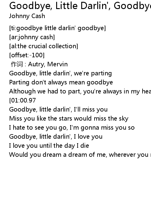 | [01:38.37] | Goodbye, little darlin', I love you |