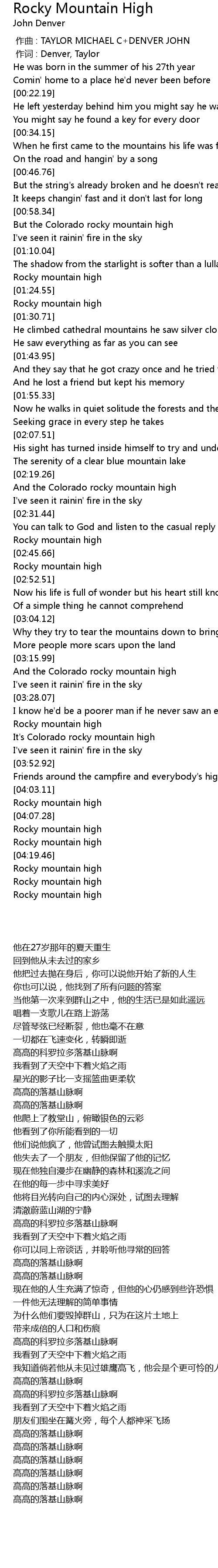 | [03:42.52] | It' s Colorado rocky mountain high |