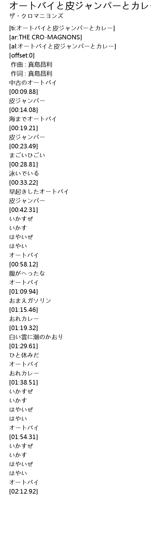 | [ti:オートバイと皮ジャンパーとカレー] | |