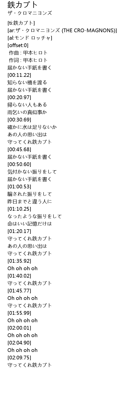 | [00:01.00] | 作词 : 甲本ヒロト |