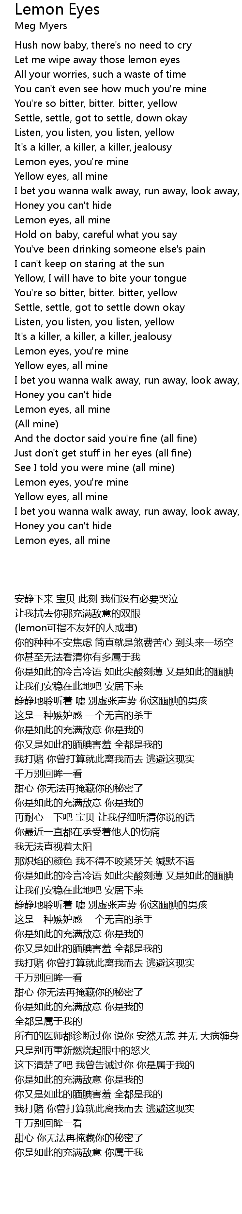 | [02:41.32] | Lemon eyes, all mine |