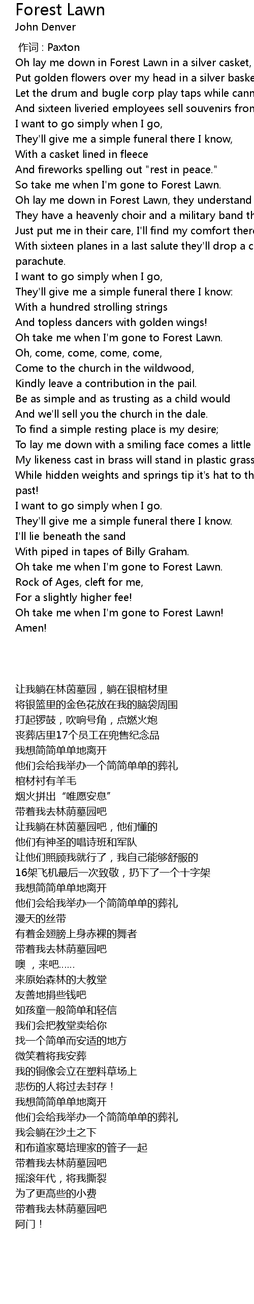 | [00:35.75] | So take me when I'm gone to Forest Lawn. |